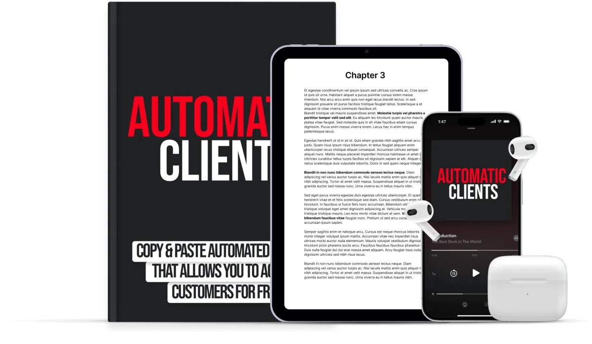 [INSERT ANSWER] You are getting a copy of the Automatic Clients ebook, available instantly. You are getting the highly praised 6+ hour Advanced Acquisition Theory course. You are getting our advanced Economics Calculator. You are getting our 2,854 Profitable Niches spreadsheet. You’re getting the 7-Day Fast Start video series, our best $200,000 Advertisement, access to our FB community, our 7-Figure Video Sales Letter script, and a 26-step Launch Checklist.